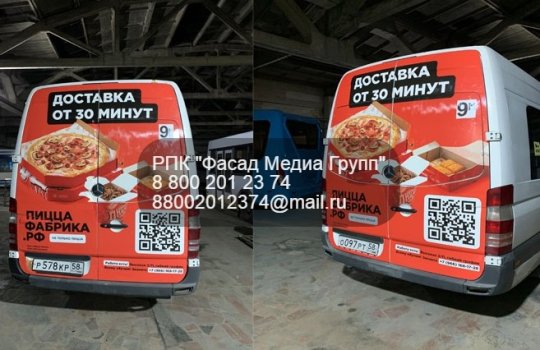 15.11.2021 г. Оклейка задних бортов маршруток для "ПИЦЦА ПЕНЗА"