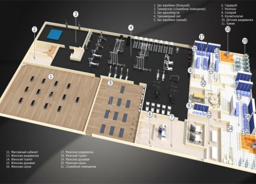 Дизайн фитнес-центра. Пример 1