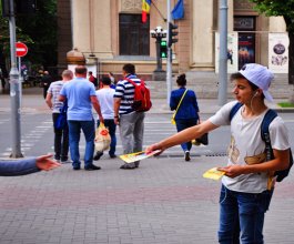 Примеры раздачи листовок, буклетов, флаеров, афиш и другой печатной продукции представлены на фото: