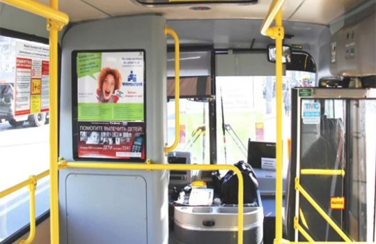 Реклама на мониторах в троллейбусе на фото выше