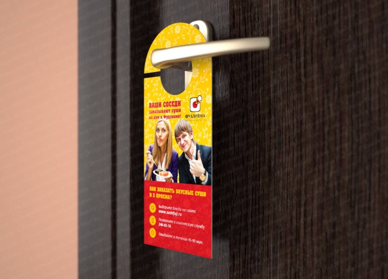 На видео, приведенном ниже, можно увидеть процесс создания макета для рекламы в подъезде: